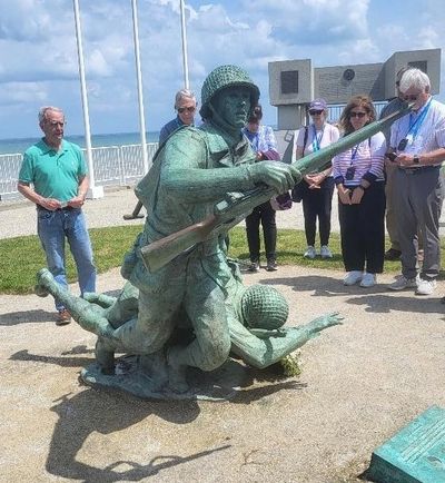 In this photo I am leading a memorial service at the "Ever Forward" statue at Omaha Beach, a tribute to the 19 National Guardsmen from Bedford, VA who were killed while storming the beaches in the first wave assault. I was privileged to participate as a military expert for Smithsonian Journeys during a recent 7-day tour in the Normandy Region of France focused on Operation Overlord.